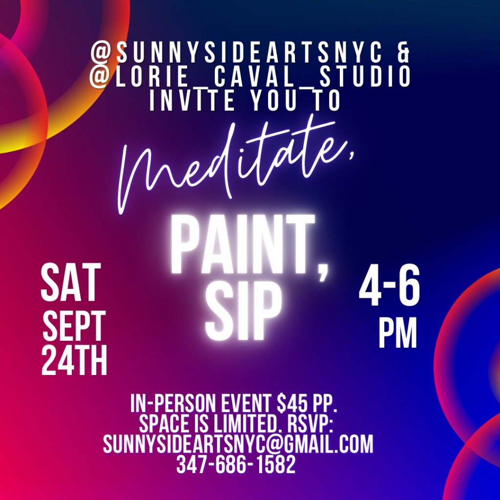 The event is called “Meditate, Paint, Sip” – a paint & sip-style event, with a meditative twist, intended to tap into artistic intuition and create inspired artwork. It is taking place Saturday, September 24th – 4-6pm. For more information or to reserve your spot, call or email Sunnyside Arts, space is limited: sunnysideartsnyc <at> gmail.com, 347-686-1582.