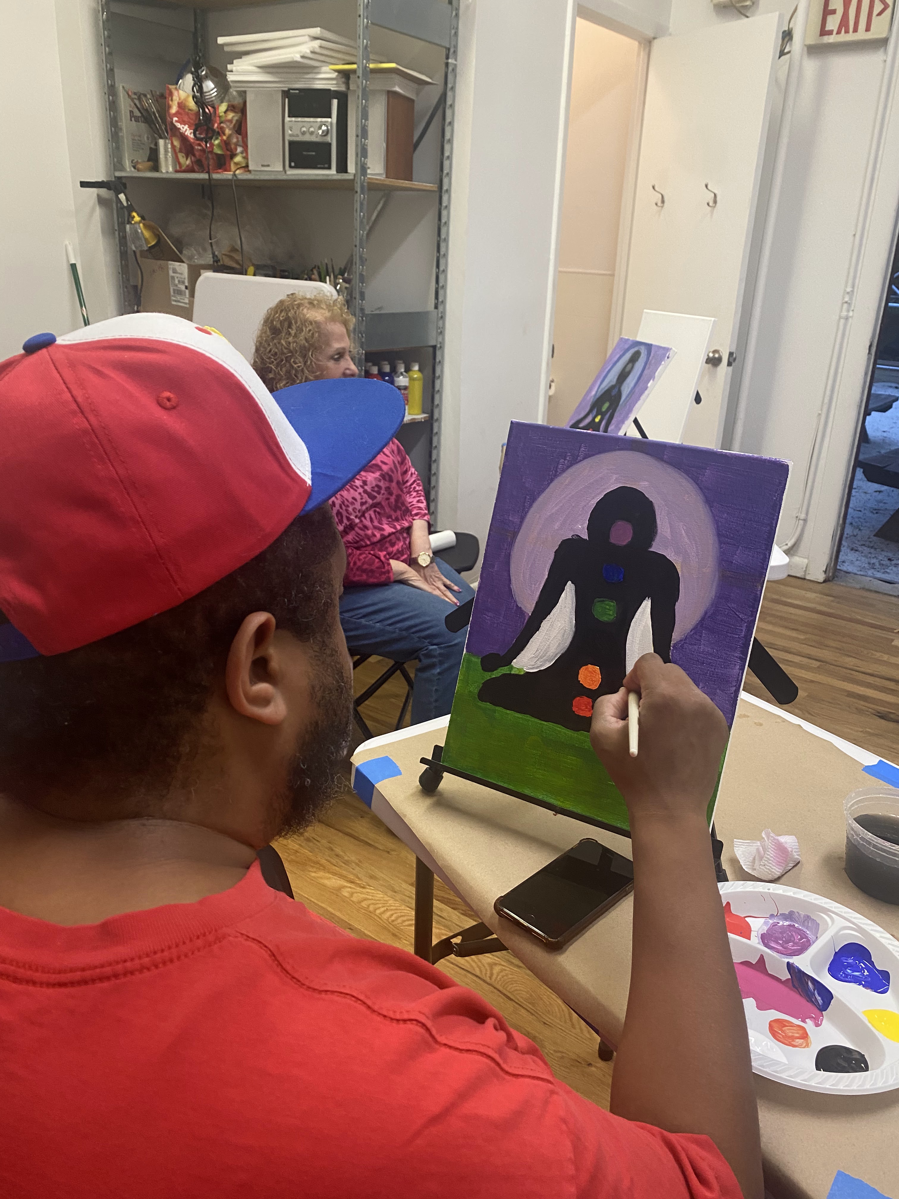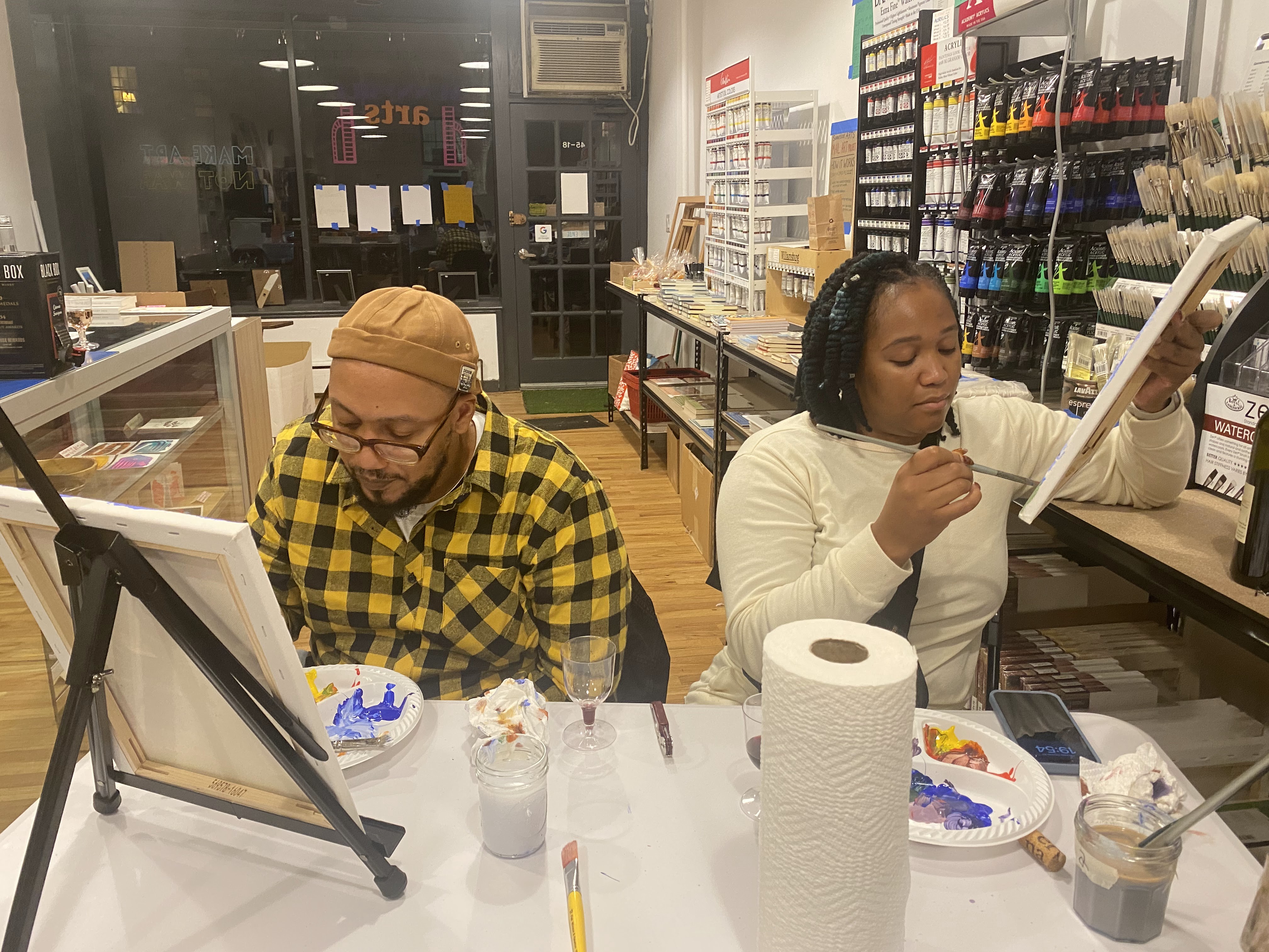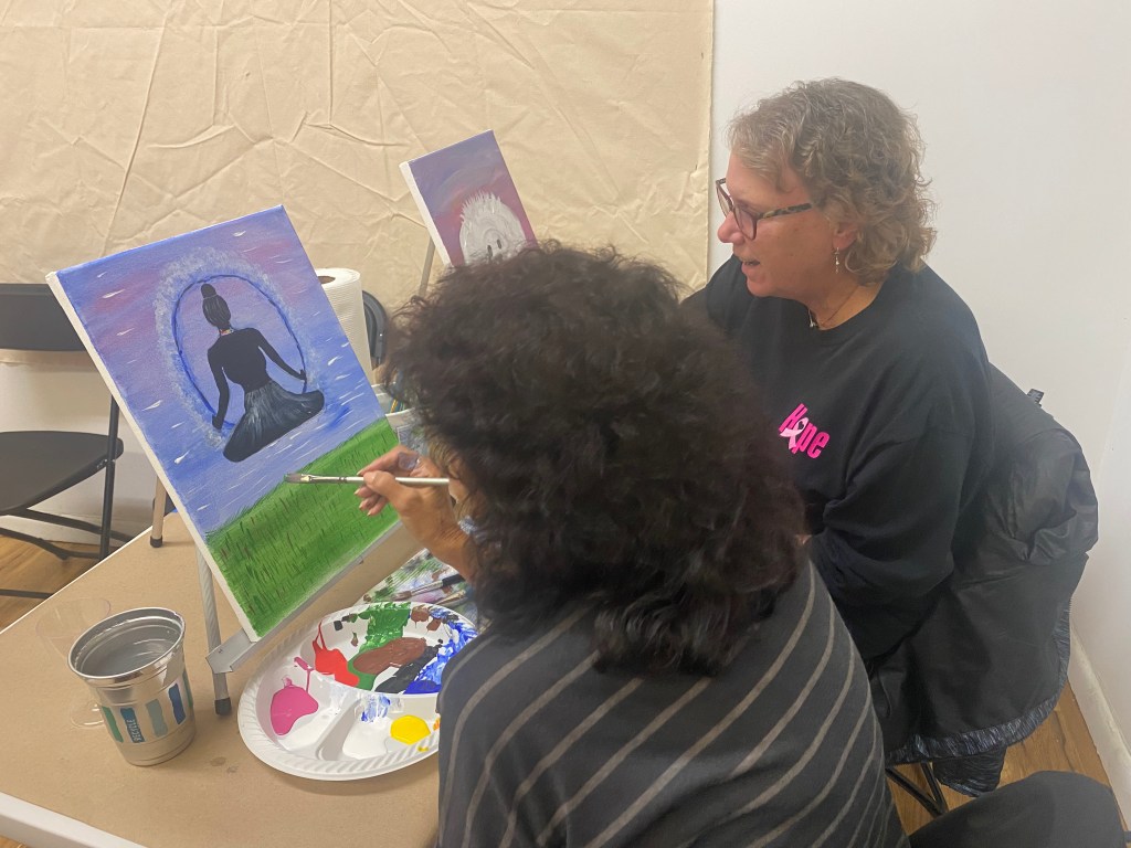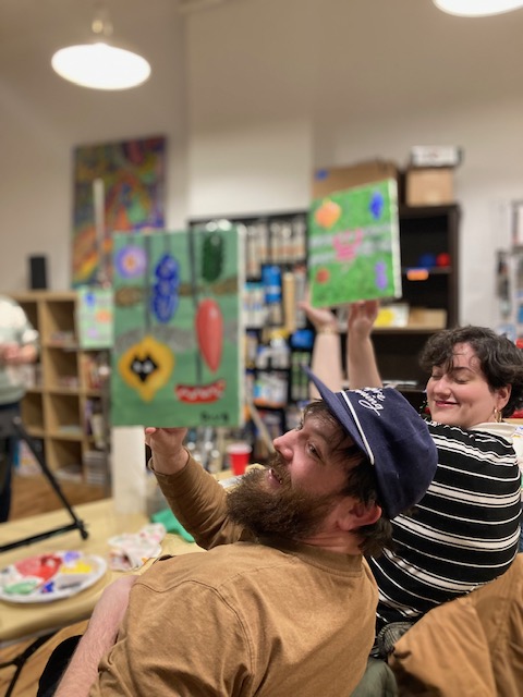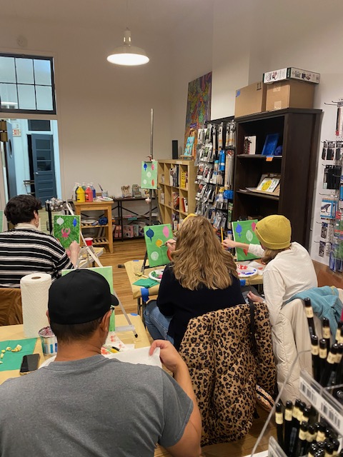 And by success, I mean yes, they have been well attended. But even more than that, they have been successful because of the magical symbiotic experience that happens when someone creates the opportunity, environment, and tools with which someone (in this case, the people who attend the events) can tap into their creativity and make art. The idea that I have been able to inspire people to explore their creativity and perhaps spark a creative practice is certainly what drives me to continue this little experiment gone right. It’s also been a great experience for me to learn how to “teach” or facilitate the paint and sip events, which have tended to be more like a painting class with wine, than the party with paint that I had assumed they would be. They have been really fun for me and for the attendees. I will add some photos below to illustrate this sentiment.