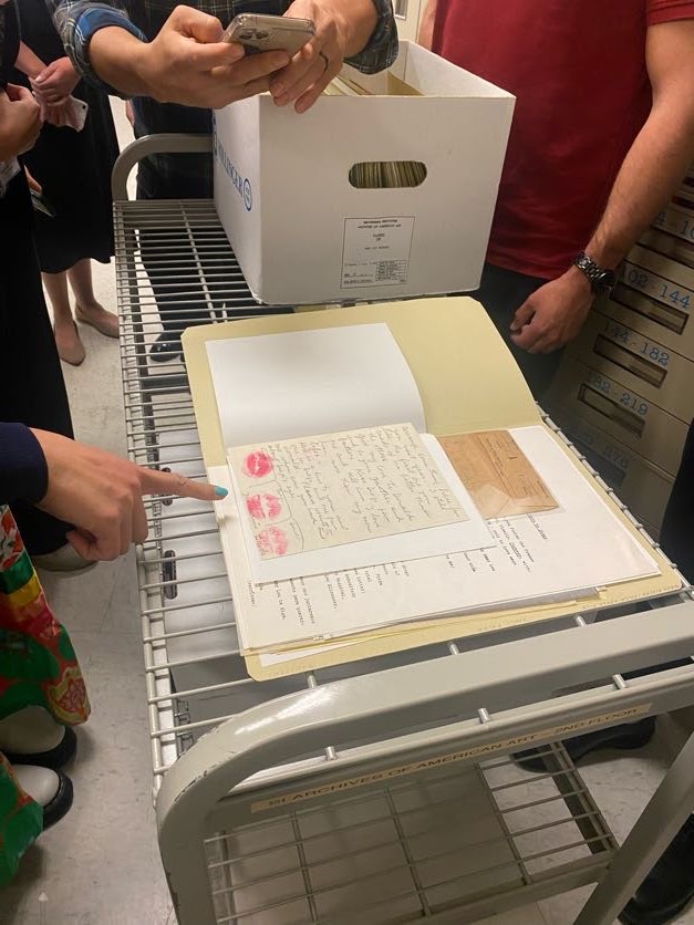 In the morning we found our way downstairs to eat a hearty breakfast before our 8am lobby call. Then, we made our way onto the street, into the brisk DC morning air as we walked over to the Smithsonian Archives of American Art. We settled into a large conference room where we would remain for the first half of he day. NALAC leadership, Maria López De León, Abel Lopez and Rosalba Rolón, started us off with a grounding conversation framed as, National Arts Advocacy Efforts/The Pulse of a Nation. Next we were joined by Mark Hugo Lopez, Director of Race and Ethnicity Research for Pew Research Center, who provided insight into data and research related to Latinx issues, attitudes, and trends. Then, Nolen Bivens, President and CEO for Americans for the Arts kindly paid us a visit to discuss what he calls Six Principles Towards Culture Shift. And finally, the man of the house, Josh T. Franco, PhD, National Collector for Archives of American Art came in to explain the process of collecting for world’s preeminent and most widely used research center dedicated to documenting the history of the visual arts in America. He then took us on a tour of the facilities and cracked open a few boxes of source materials. He even showed us hand-written letters from Frida Kahlo to friend Emmy Lou Packard (1940) featuring Frida’s red-lipstick kisses at the bottom. Needless to say, we got a big kick out of that!