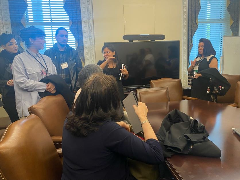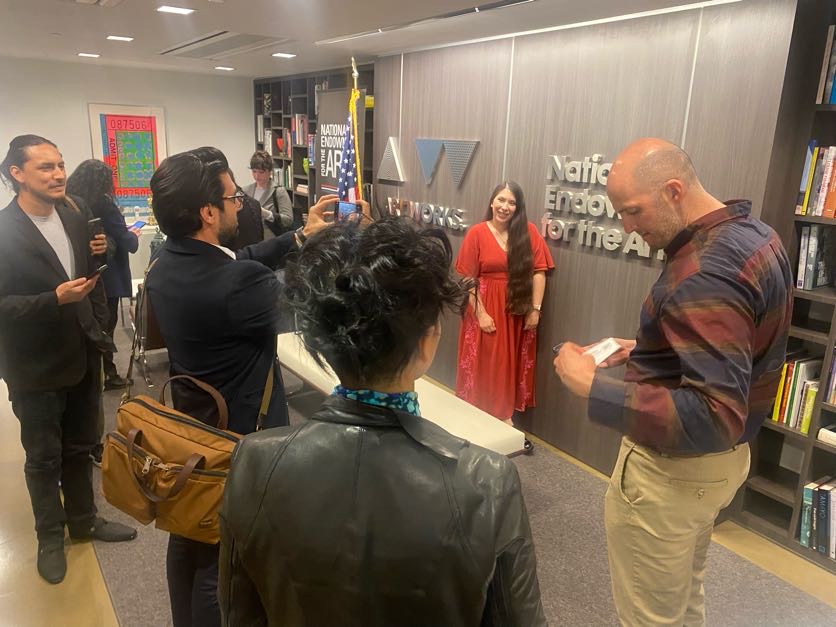 Once again, we woke up early for a hearty breakfast and met up for an early morning lobby call. We emerged like a school of fish onto the street and this time, flowed down into the subway station. The trip was pretty swift and easy (saying this from my NYC-perspective), in about 20 minutes we were at the offices of the National Endowment for the Arts (NEA). We were situated in a large room with tables around the perimeter where we were all (NALAC folks) seated along Ra Joy, Chief of Staff and the entire NEA Programs Staff (some of whom were there in person, and the remainder via Zoom on a huge screen). For about an hour and a half we learned about each of their respective programs and initiatives, and they learned about our artistic and advocacy work and concerns.