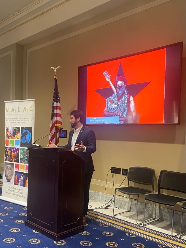 Being that Congresswoman Nydia Velazquez has a relationship with NALAC, and I live in her district, we were able to secure a group meeting which included Rosalba, along with Fellows Viannca, Antonieta, and myself. Since we are all NYC constituents, we spoke about the need for continued support and development of Latinx and BIPOC-led arts organizations, and overall budgetary support for the NEA and expansion of their programs. Rep. Velazquez and her staffer were very receptive to our stories and shared our community interests. Later, Antonieta and met with our NYS Senator, Charles Schumer’s staffers and had a similar conversation that was well received. Each of the fellows had their own unique experiences, meeting with Representatives from their home states, and focusing on issues central to their communities.