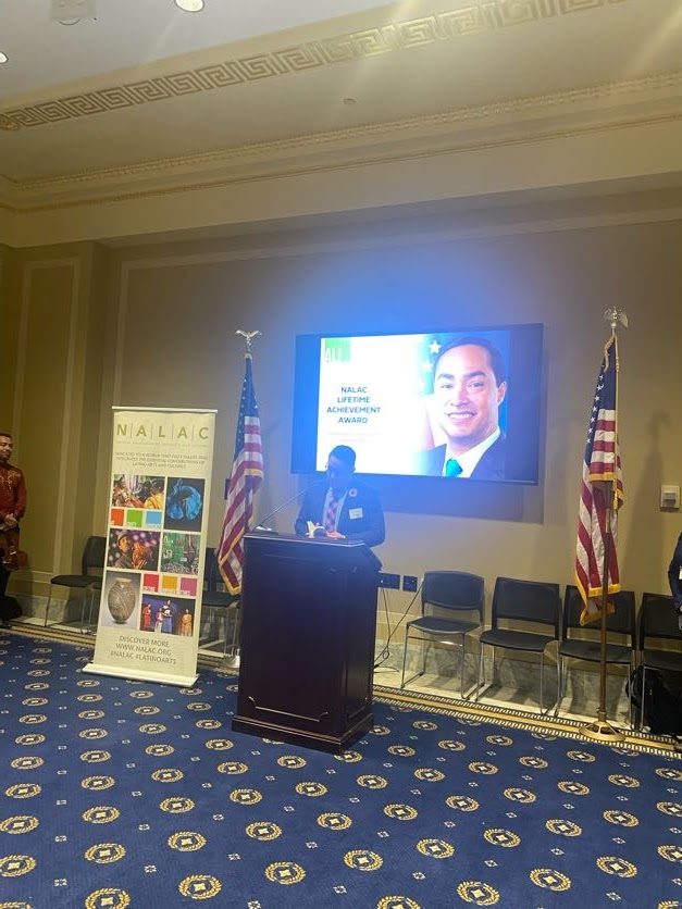 NALAC arranged for a lovely reception for us to be held in the Gold Room of the Rayburn House Office Building, complete with a live mariachi band (Groupo Fenix) and catering. We fellows were presented with certificates of achievement for completing the ALI fellowship. As well, Congressman Joaquin Castro of Texas was presented with the NALAC Lifetime Achievement Award for his longtime commitment to supporting the arts. And special guest Huascar Medina, Seventh Poet Laureate of Kansas, performed his poem, New American.