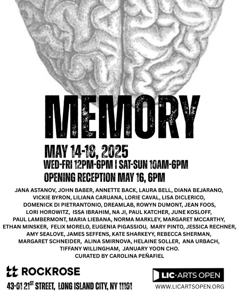 - Memory – Opening Reception Friday May 16th – 6:00 – 9:00 PM – 43-01 21st Street, Suite 123 (1st Floor), LIC, NY 11101.