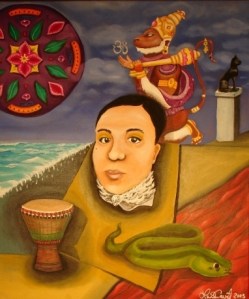 Drum, Snake Bastet, Hanuman, Mandala and Me “Drum, Snake Bastet, Hanuman, Mandala and Me” 16×24, oil on canvas, 2003. Like Loading...